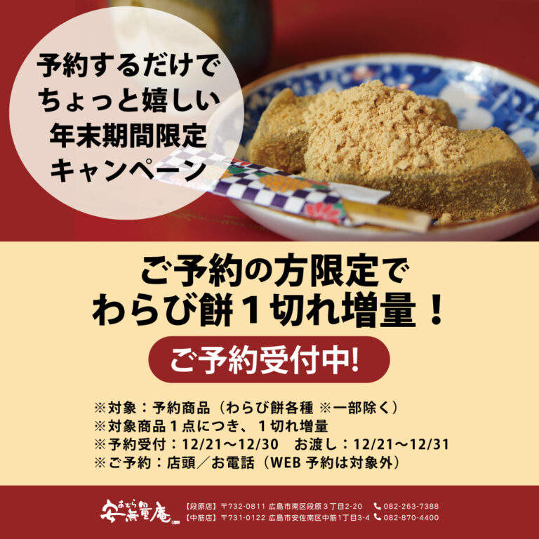安無量庵のわらび餅を食べたいけど、どうしても諸事情があってご来店いただけない方は是非ご相談ください。